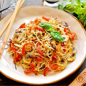 Фунчоза с овощами и грибами
