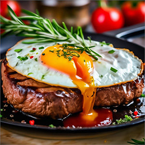 Бифштекс c яйцом и соусом Демиглас