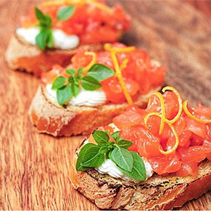 Брускетты с форелью гравлакс
