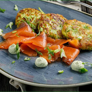 Оладьи с цукини и лососем
