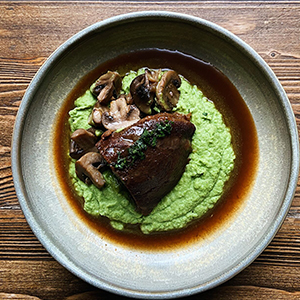 Говяжьи щечки с зеленым пюре